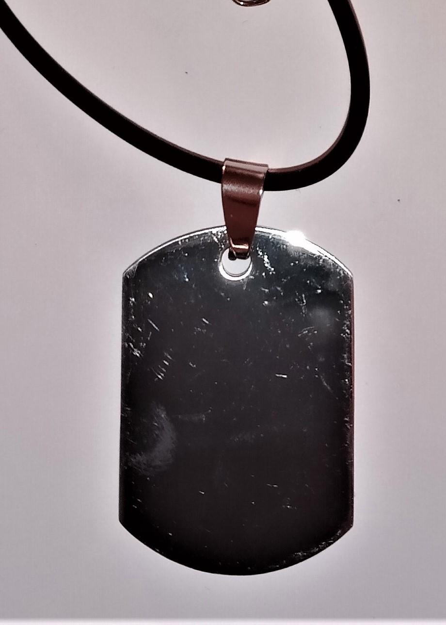 Collier en acier inoxydable monté sur cordon réglable plaque militaire à graver 2.5cm x 3.5cm