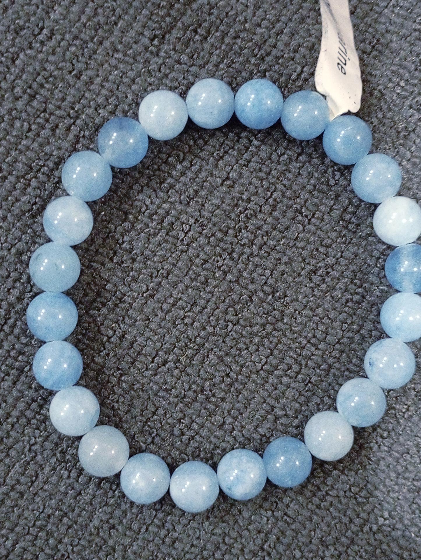 Bracelet en aquamarine perle de 8mm 24perles