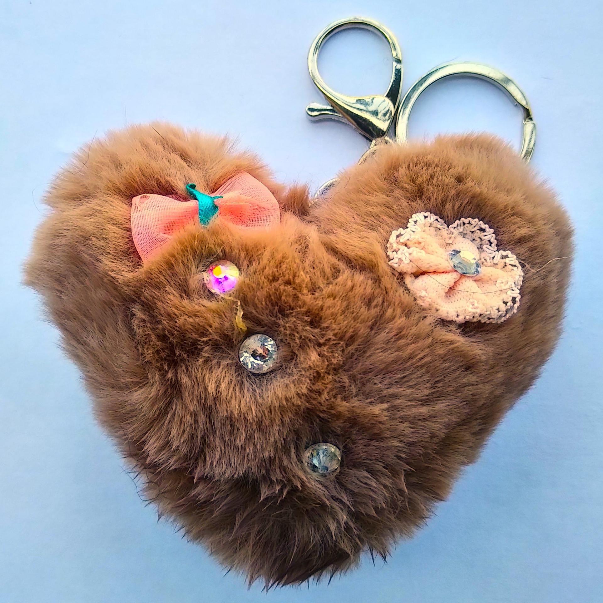 Porte-clés peluches taupe strass blanc irisé 10cm x 9cm environ